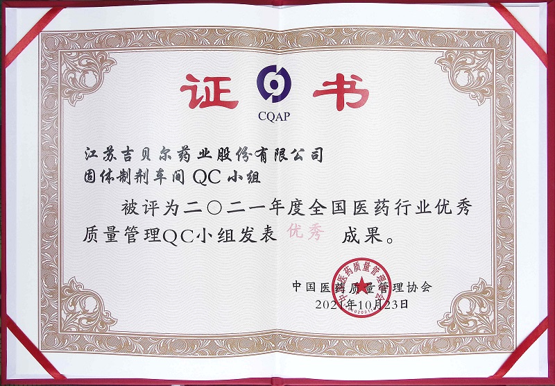 2021年10月23日,在第42次全國醫(yī)藥行業(yè)質量管理(QC)小組成果發(fā)表交流會上傳來喜訊,江蘇南宫28藥業(yè)股份有限公司榮獲“二〇二一年度全國醫(yī)藥行業(yè)優(yōu)秀質量管理QC小組發(fā)表優(yōu)秀成果”。